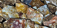 - Bahan baku: batu, batu kapur, granit, limbah beton, bijih emas, bijih besi, dll.